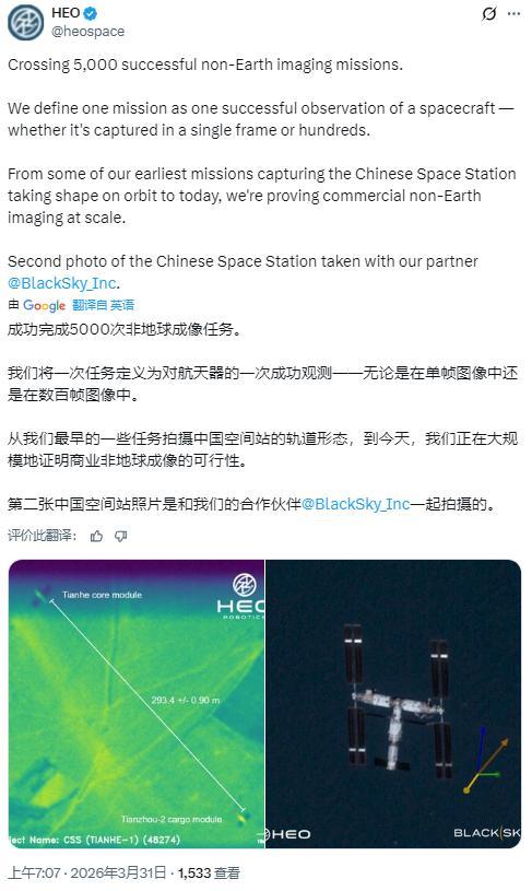 然而,这一次拍摄的对象又是中国空间站,并且说“从我们最早的一些任务拍摄中国空间站的轨道形态,到如今,我们正在大规模地证明商业非地球成像的可行性。”,同时指出了,这是针对中国空间站第二次拍摄。