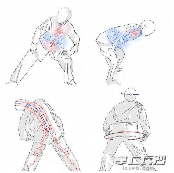 转动,旋动核心穴,运转铁三角。以大椎、命门为支点,头颈的摇动和腰胯的摆动,带动脊柱缓缓转动,如同水车的轮轴带动整架水车运转。这一步让上下焦的气机彻底贯通,心火能下得来,肾水能上得去,打通心-肾-胞宫铁三角。